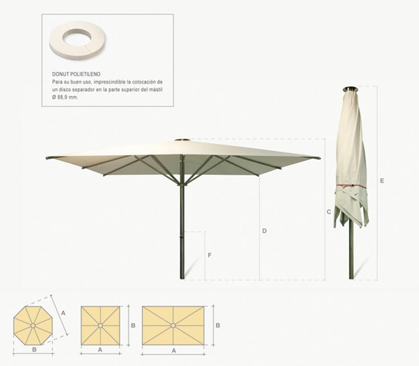 - Mástil Ø 88,90mm, rodeado por 8 brazos.